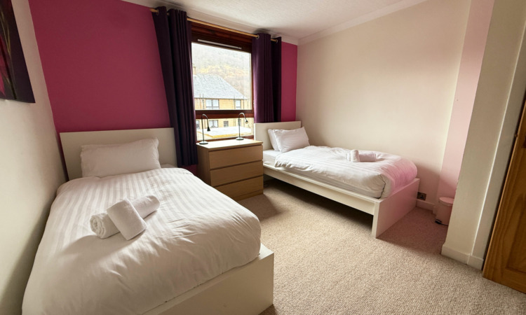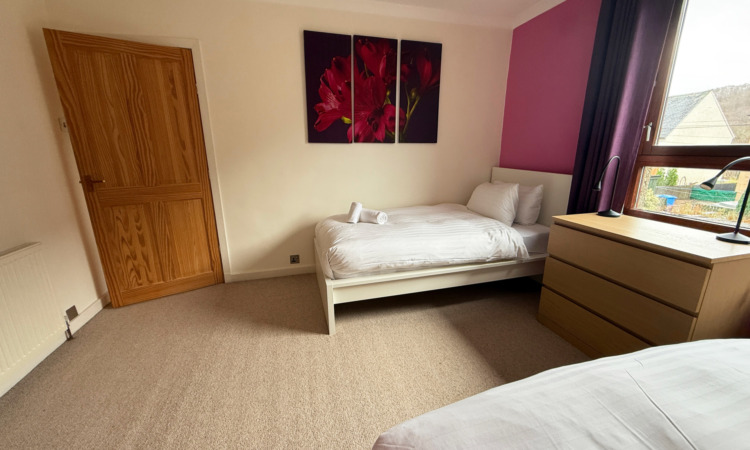 From Fort William head North on the A82 take the second right turn into Claggan (after the traffic lights). Follow the road taking the second turning left onto Melantee. Pass the first 2 lots of semi detached properties on the right and No 20 is in the middle of the next block of 4.